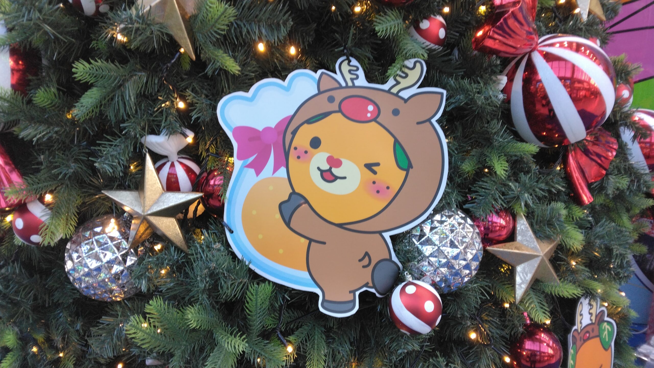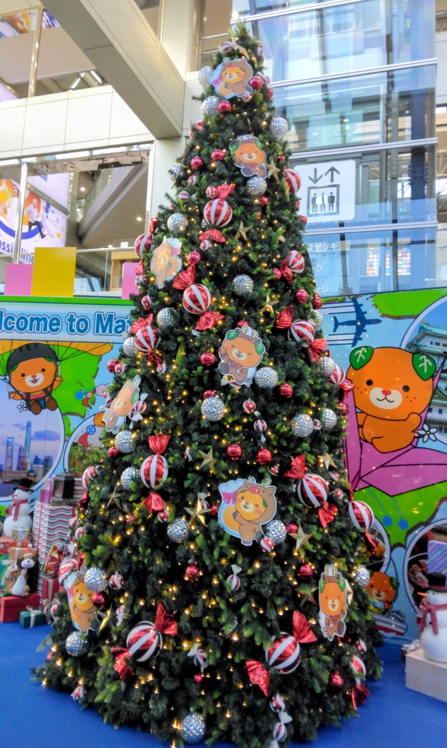 今朝、仕事で来ていた姉を松山空港に見送りに行くと、みきゃんツリーがありました♪