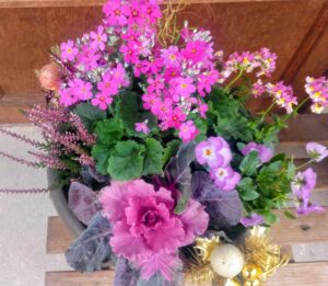 サクラソウのピンクを中心にネメシア、葉ボタン、カルーナもピンク系でまとめてみました♪