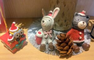 小物好きな私が、あちこちにクリスマスグッズを飾っています