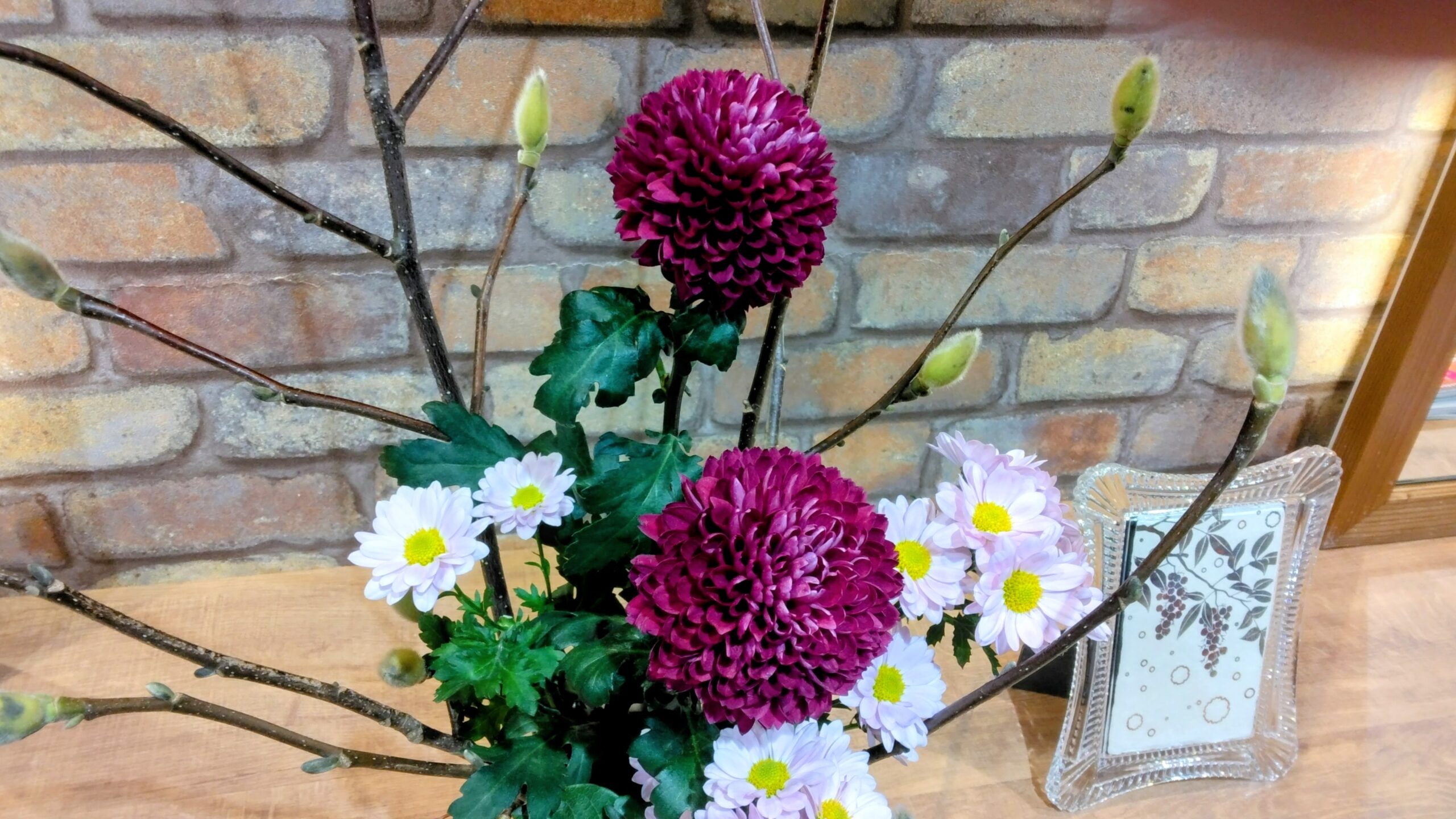 2月のお花は、モクレンと菊。