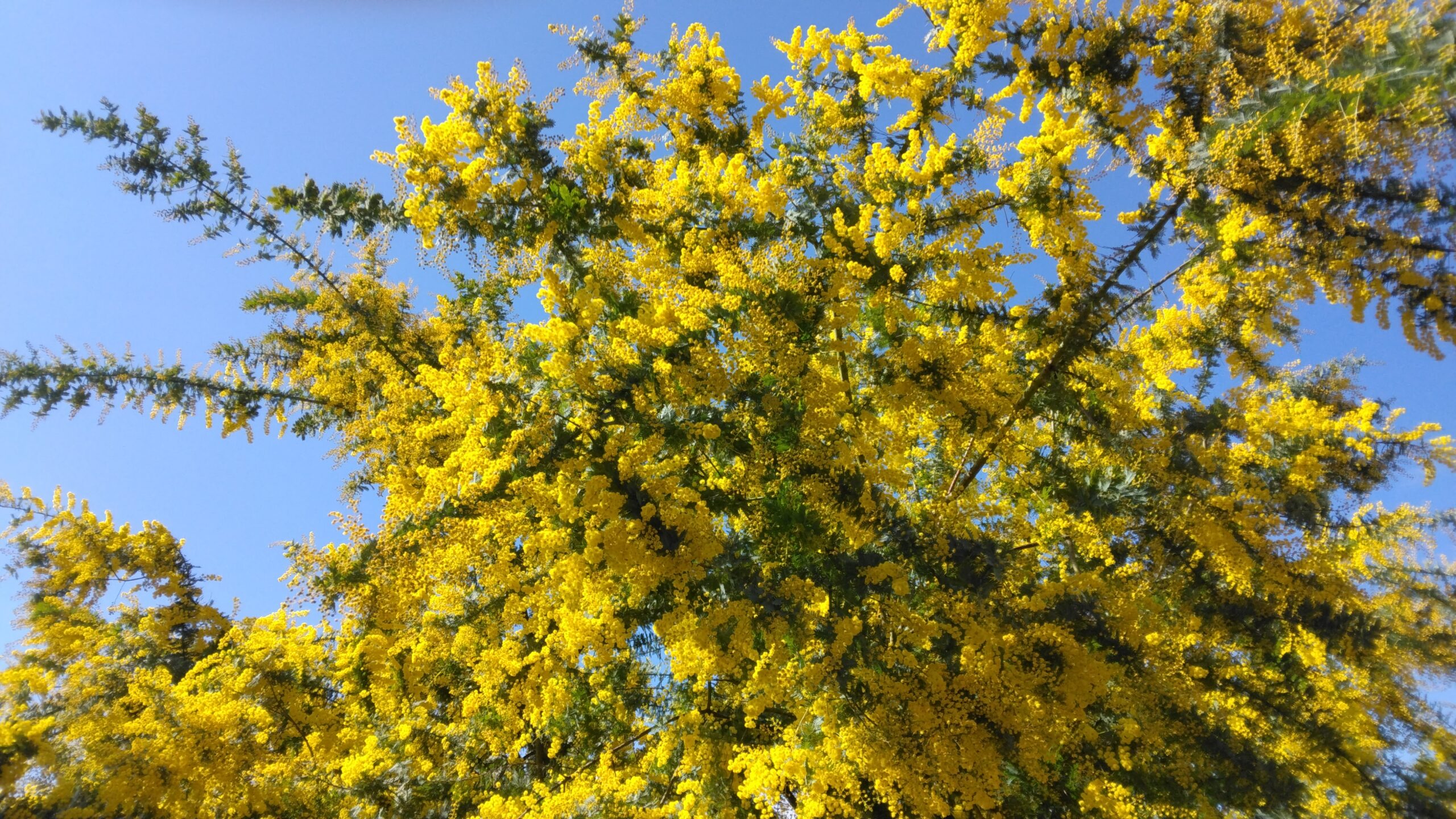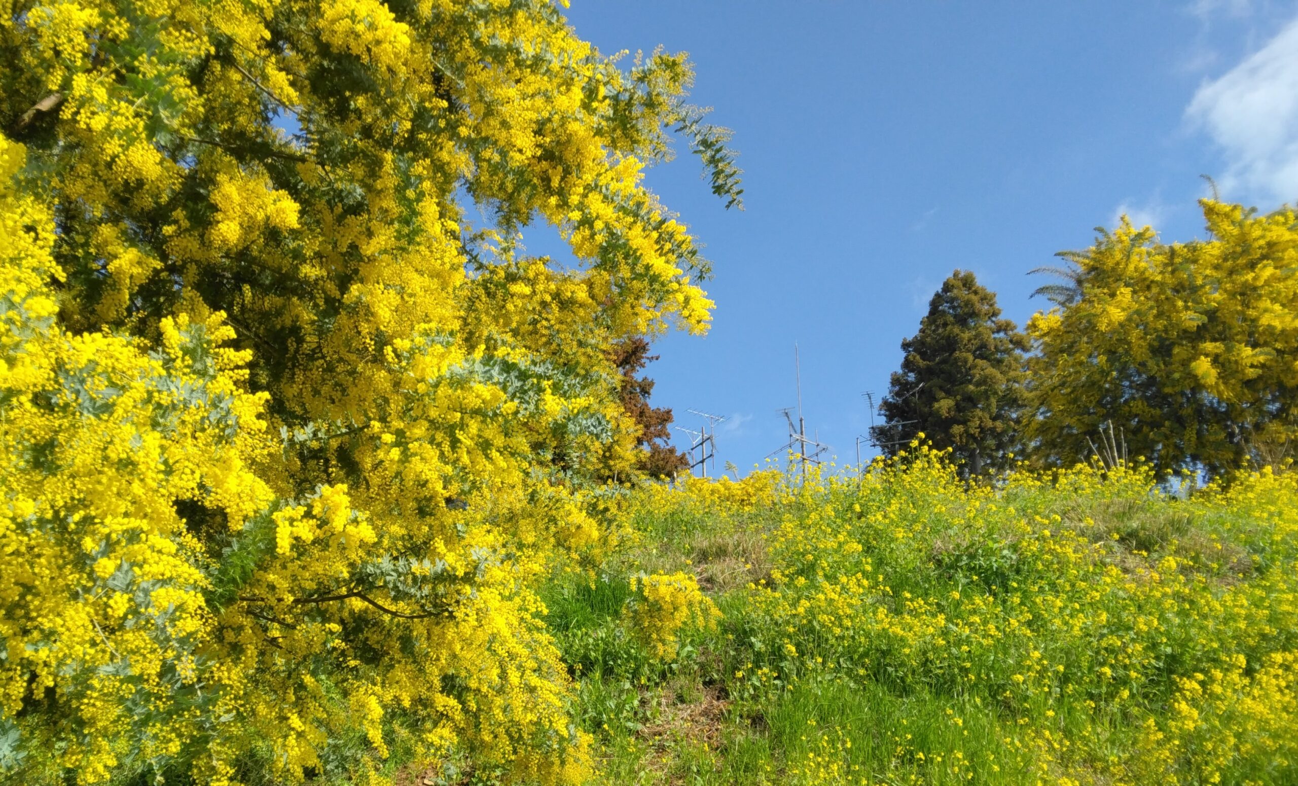 菜の花とミモザの黄色が青空に映えてキレイでした