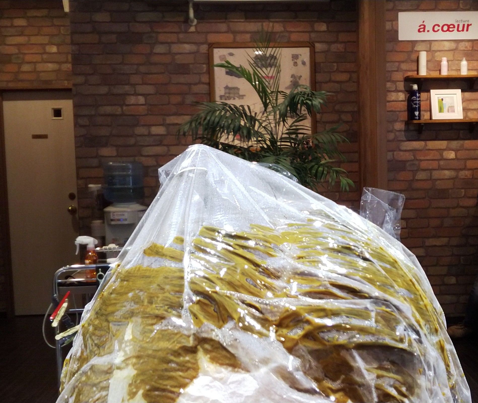 (↓ヘナトリートメント塗布後、放置中)